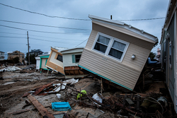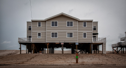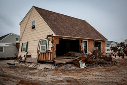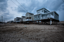 Damaged, empty homes lined the shore at Beach Haven after Hurricane Sandy
