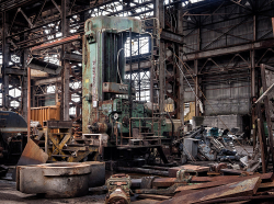 The original forge that would become Birdsboro steel was built in 1740 and provided pig iron for the Revolutionary War, armaments used in the War of 1812, and the plowshares used to settle the Midwest. Later it would produce iron used by the Union in the Civil War, the railroads that crossed the country, and the Navy when they switched from wood to steel ships. A risky purchase of a tank manufacturing company that failed to win a government contract weakened Birdsboro, but in the end an extended strike and rising steel imports shut Birdsboro for good in 1988. Parts of Birdsboro steel were being torn apart for scrap while I was photographing it - a sad end for a site so prominent in American history. While not necessarily at this particular building, I was told that my grandfather had for a time worked for Birdsboro steel. I was curious to check it out - particularly after seeing some historical photos of the enormous steel pressed and other equipment that had once filled the hallways. I hadn't seen any pictures of the interior up until that point so I was in essence flying blind when I went there.